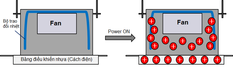 5 (1 đánh giá)Các tấm trao đổi nhiệt (cánh tản nhiệt) và tấm nhựa (chất cách nhiệt) trong máy điều hòa không khí được tích điện dương do tĩnh điện tạo ra bởi sư ma sát giữa không khí do chuyển động quay của quạt. Khi điều hòa được tích điện, luồng gió sẽ không chuyển động theo hướng ban đầu và khiến cho hiệu quả trao đổi nhiệt bị giảm sút.